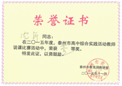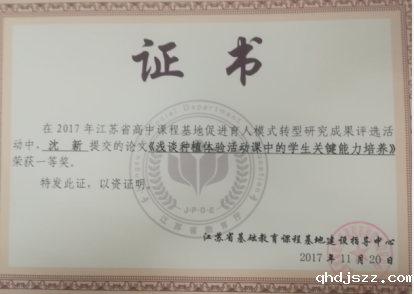 5、教师课程开发意识不断增强。教师们投身课程基地建设,把综合实践活动这一国家课程,依据校情、学情进行校本化,自身的专业素养得到了提高,同时跨学科协同能力也有了提升,校本课程开发使一部分老师找到了施展才华的空间。在课程基地的建设引领下,我校多为老师撰写的综合实践活动相关论文获奖。同时我校沈新老师在市综合实践活动说课比赛中获一等奖。我校姚小林老师申报的市级立项课题《基于省级课程基地提升学生学科素养的实践研究》已于2015年结题。