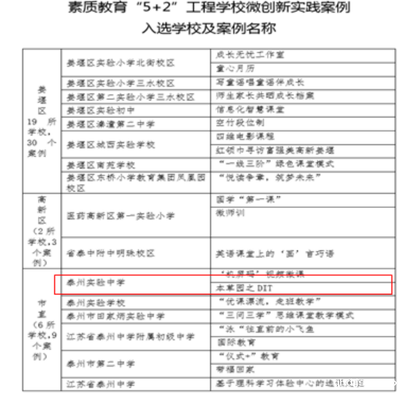4.“‘本草园’之DIT”成功入选第七批泰州市学校微创新优秀实践案例