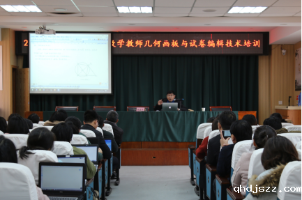 钱德春主任以正方形、圆、二次函数等常见图形为例展示具体操作方法,整个培训直观明了,高效实用。所有与会数学老师认真聆听,学会了如何使用几何画板,如何将几何画板中的图形编辑到word文本里,如何在Excel中制作表格并将表格编辑到word里,如何在公式编辑器中调整代数式字体的大小,如何使用域标注弧的记号……