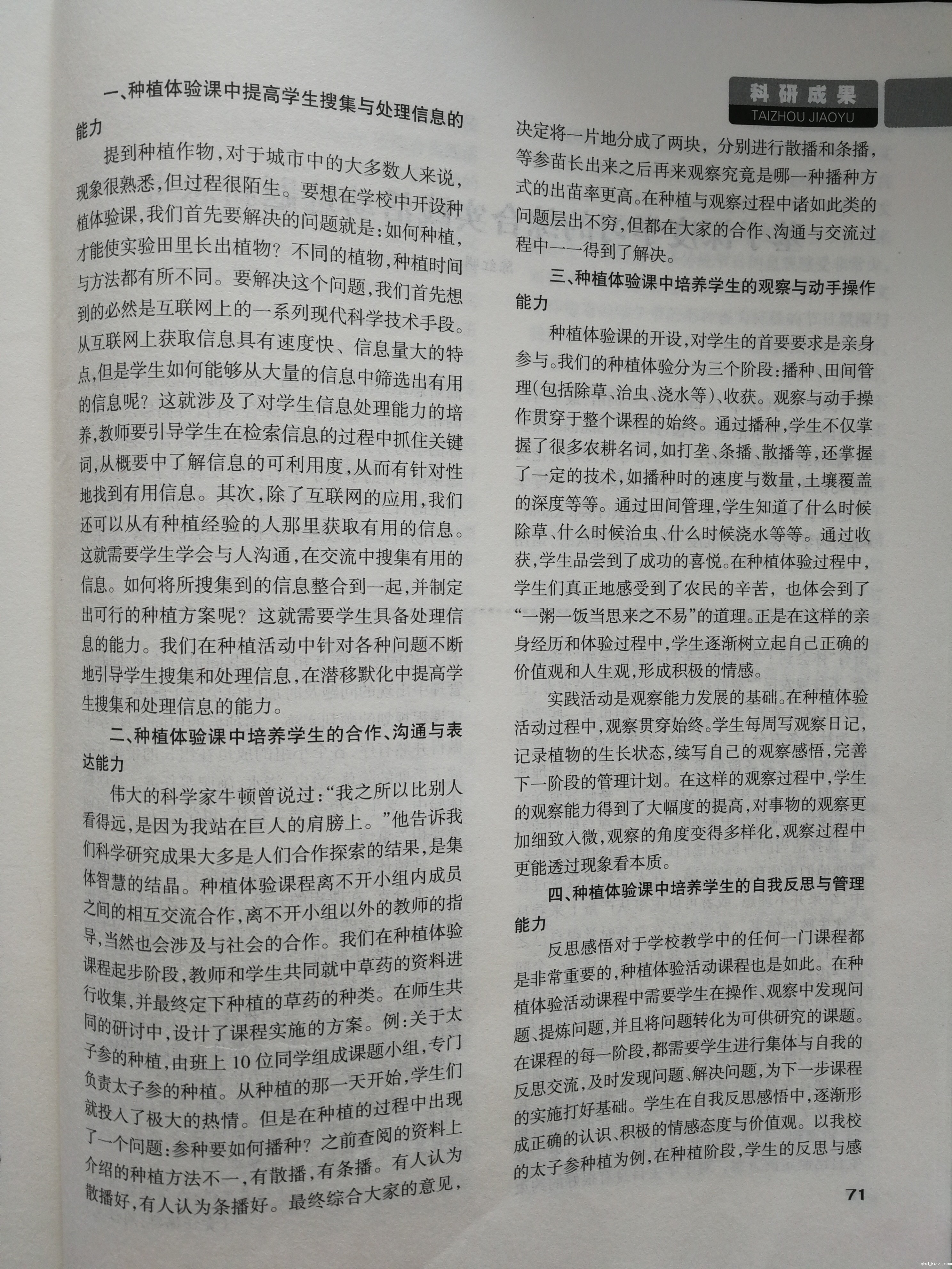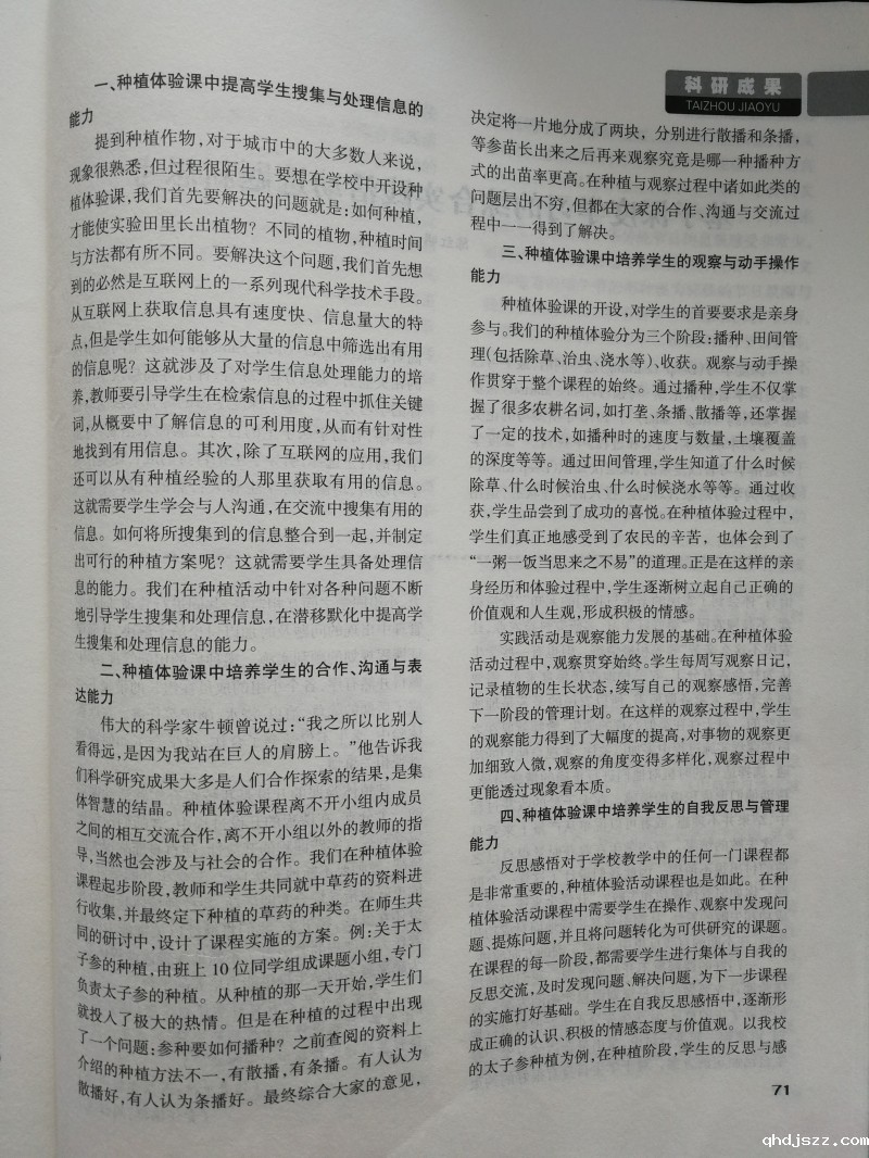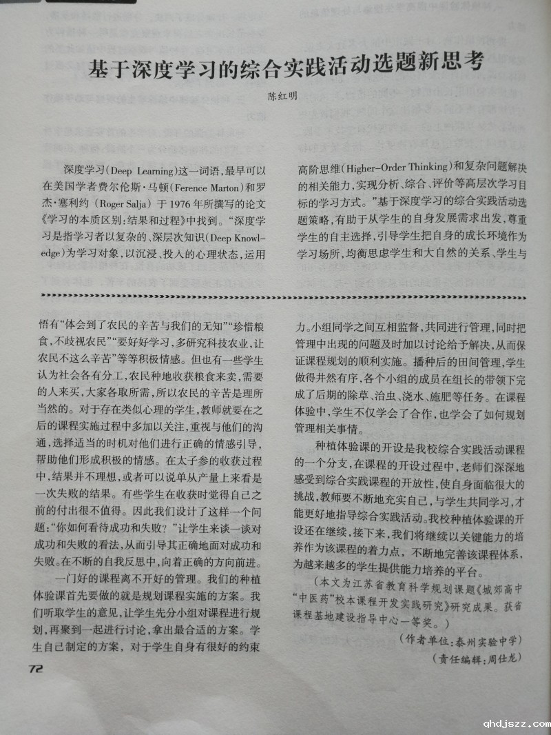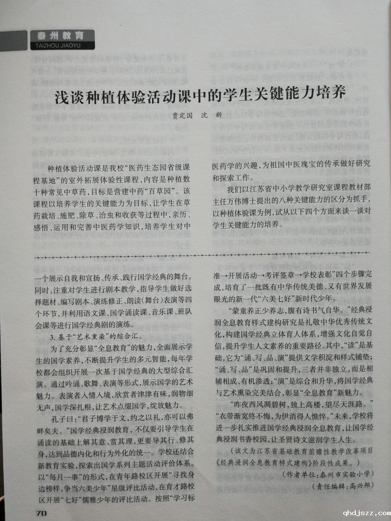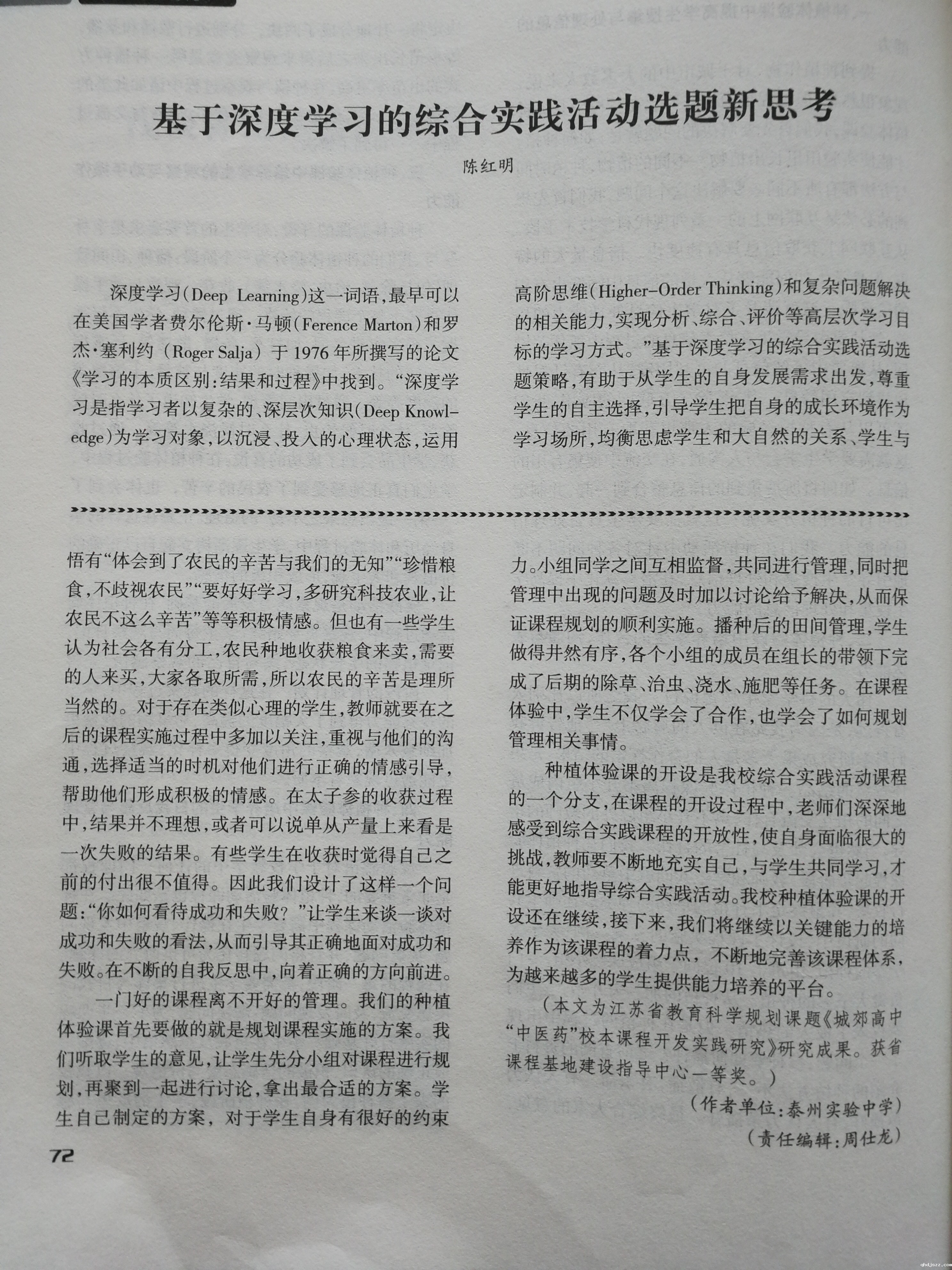 教科研成果丰硕,“主体参与”课堂模式被列入教育部基础教育一司《管理标准》案例,2013、2014年成为教育部“国培计划”教学观摩学校,承办国家级教研培训多次,现拥有20个国家、省、市级研究课题,拥有江苏省医药生态园综合实践活动课程基地......<详情>