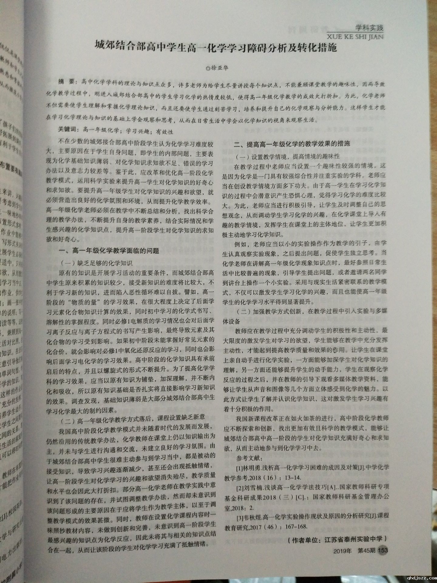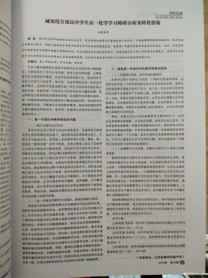 城郊结合部高中学生高一化学学习障碍分析及转化措施