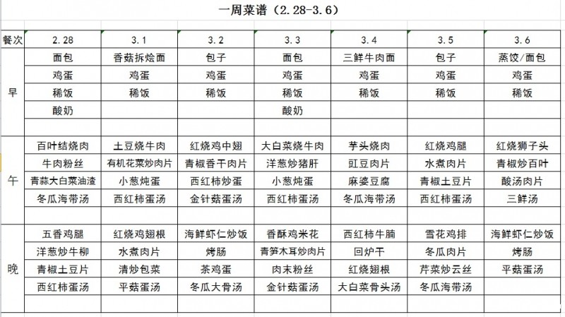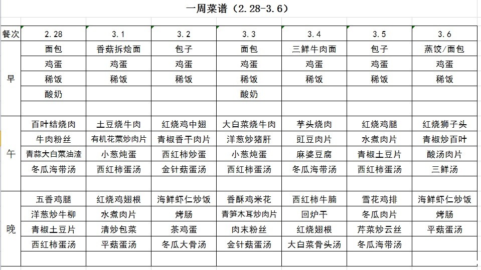 一周菜谱(2.28-3.6)