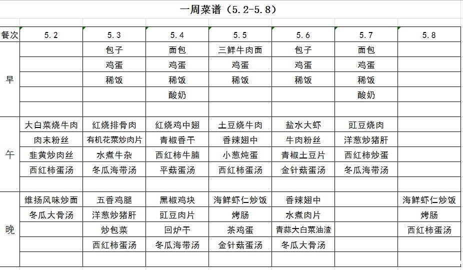 一周菜谱(5.2-5.8)