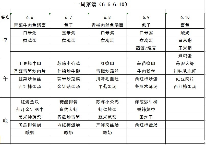 一周菜谱(6.6-6.10)